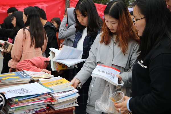 为唤醒大学生对阅读的兴趣,传承勤俭节约的传统美德,由3044am永利集团3044noc考研服务社主办、南湖学思社协办的“公益赠书,书香馥郁”大型公益赠书活动于“第二十三个世界读书日”在八餐小广场顺利举办。活动引起了学子的广泛关注,现场热闹非凡。