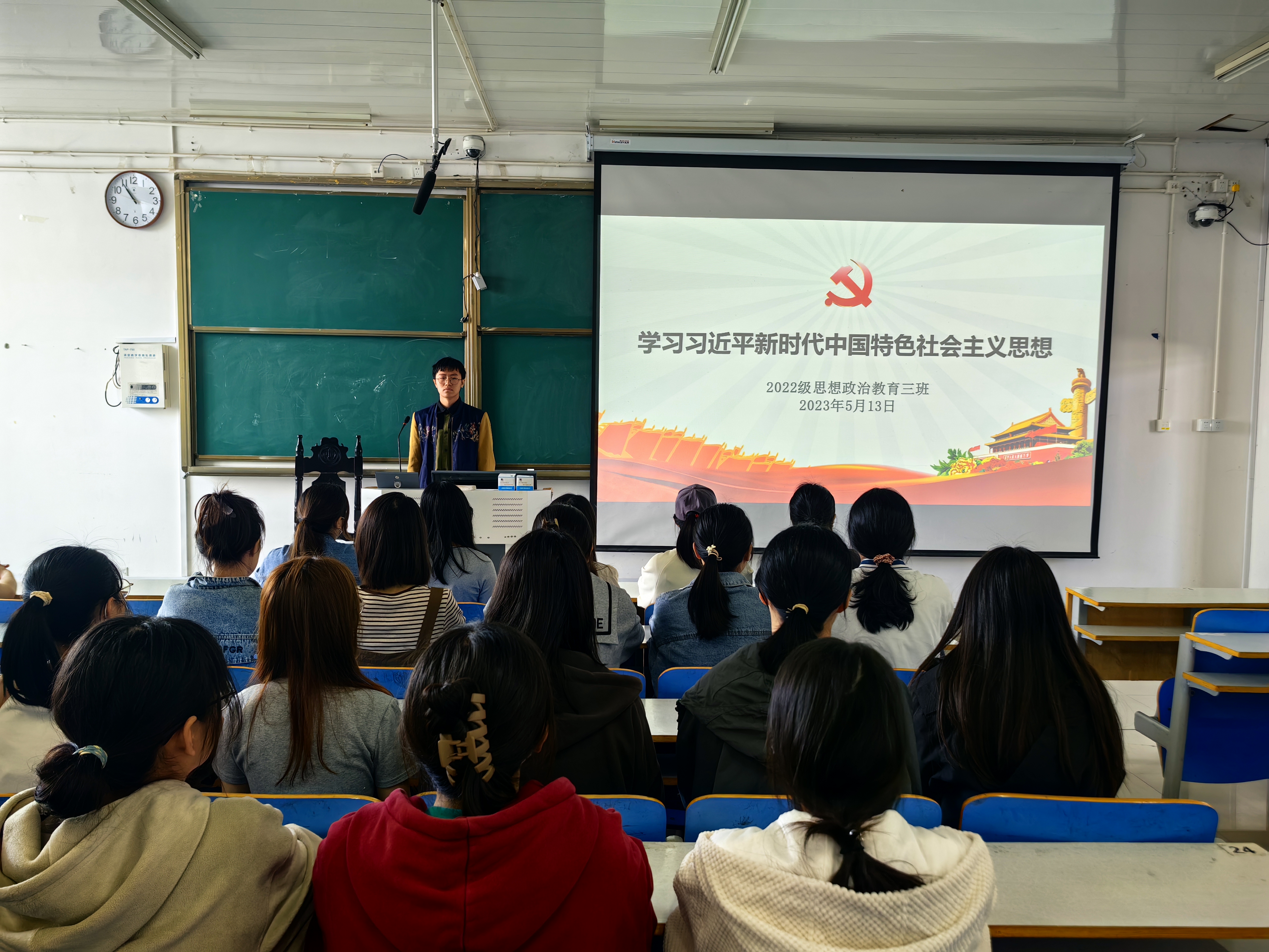 5月13日下午,3044am永利集团3044noc2022级思想政治教育三班在社科楼515教室召开学习习近平新时代中国特色社会主义思想主题团课。永利官网2022级思想政治教育三班全体成员共同参加此次团课。团课由团支书余浩洋主持。
