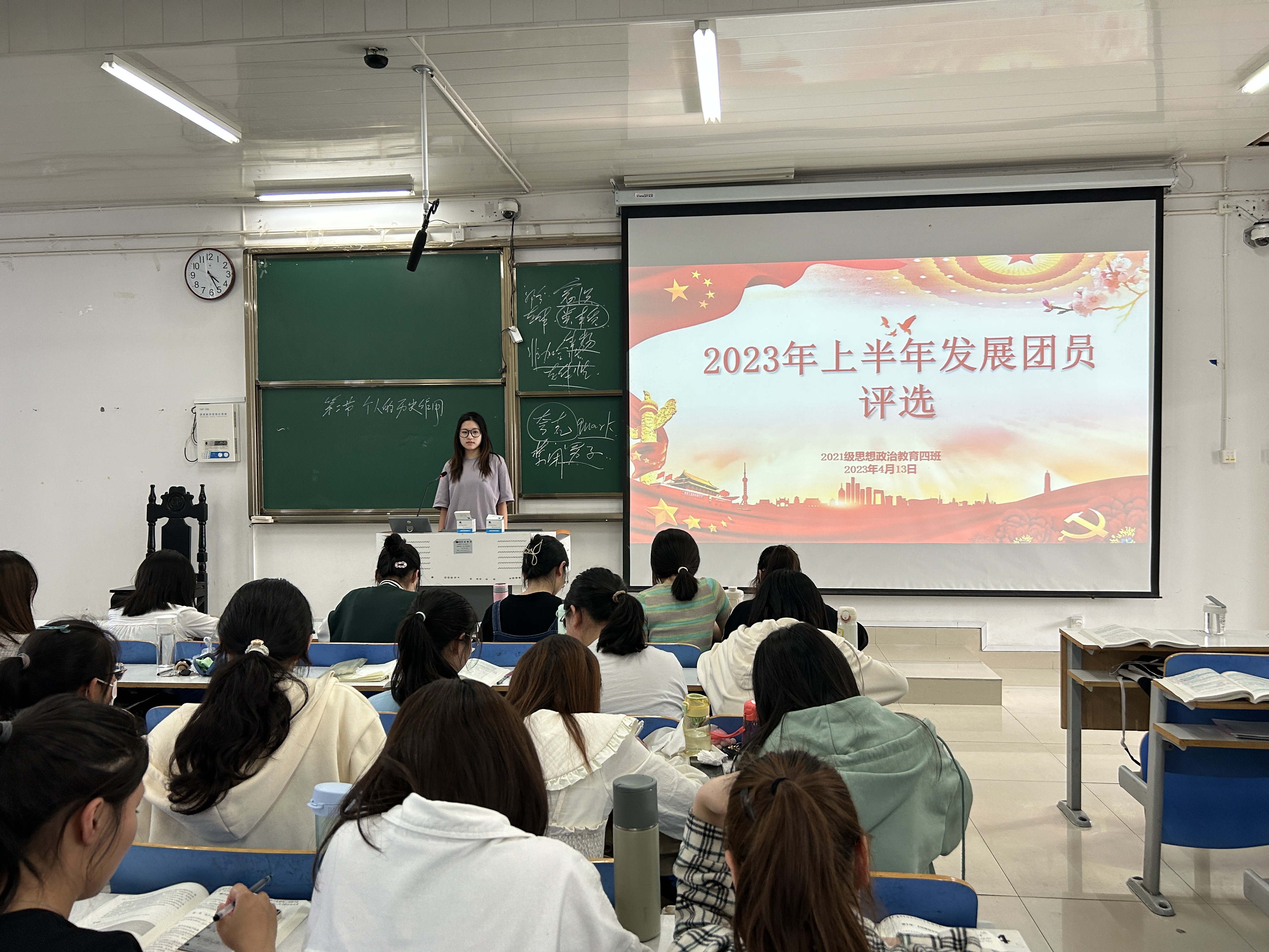 4月13日下午,3044am永利集团3044noc2021级思想政治教育四班在社科楼514教室召开2023年下半年发展团员民主评议会。2021级思想政治教育四班全体团员共同参会。会议由团支书刘珂含主持。