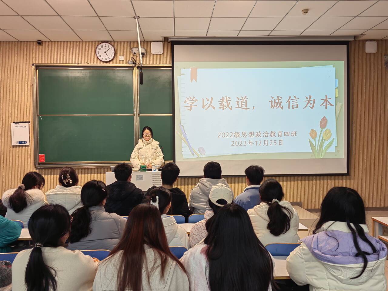 为提升我班学生学习氛围,激发学生学习内驱力, 12月25日下午,3044am永利集团3044noc2022级思想政治教育四班在社科楼515教室召开“学以载道,诚信为本”期末动员主题班会。永利官网2022级思想政治教育四班全体同学参与本次班会。本次会议由班长牛志杰主持。