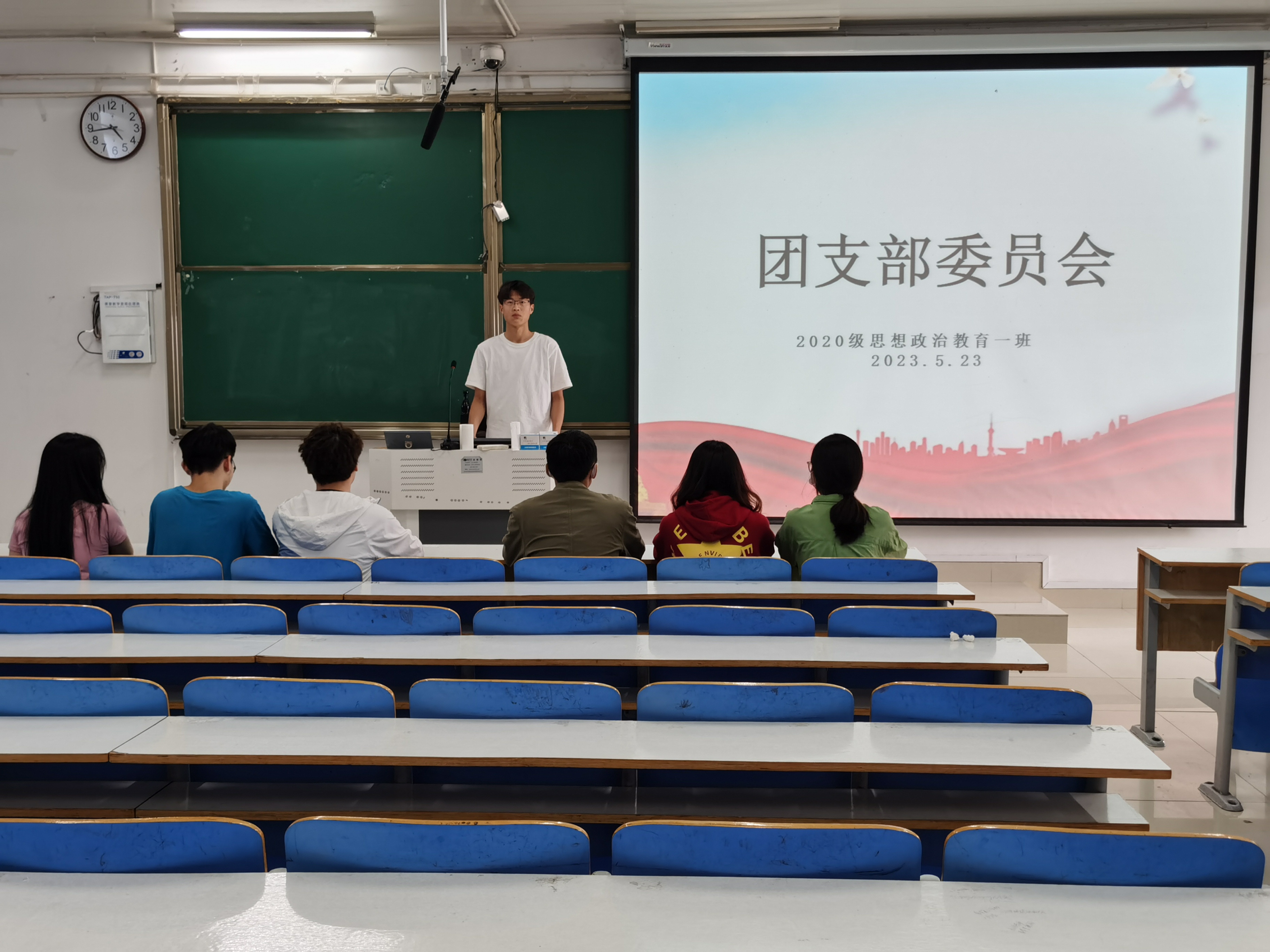 5月23日下午,3044am永利集团3044noc2020级思想政治教育一班在社科楼514教室召开团支部委员会。2020级思想政治教育一班全体团支部委员参加了本次会议。会议由团支部副书记白帅豪主持。