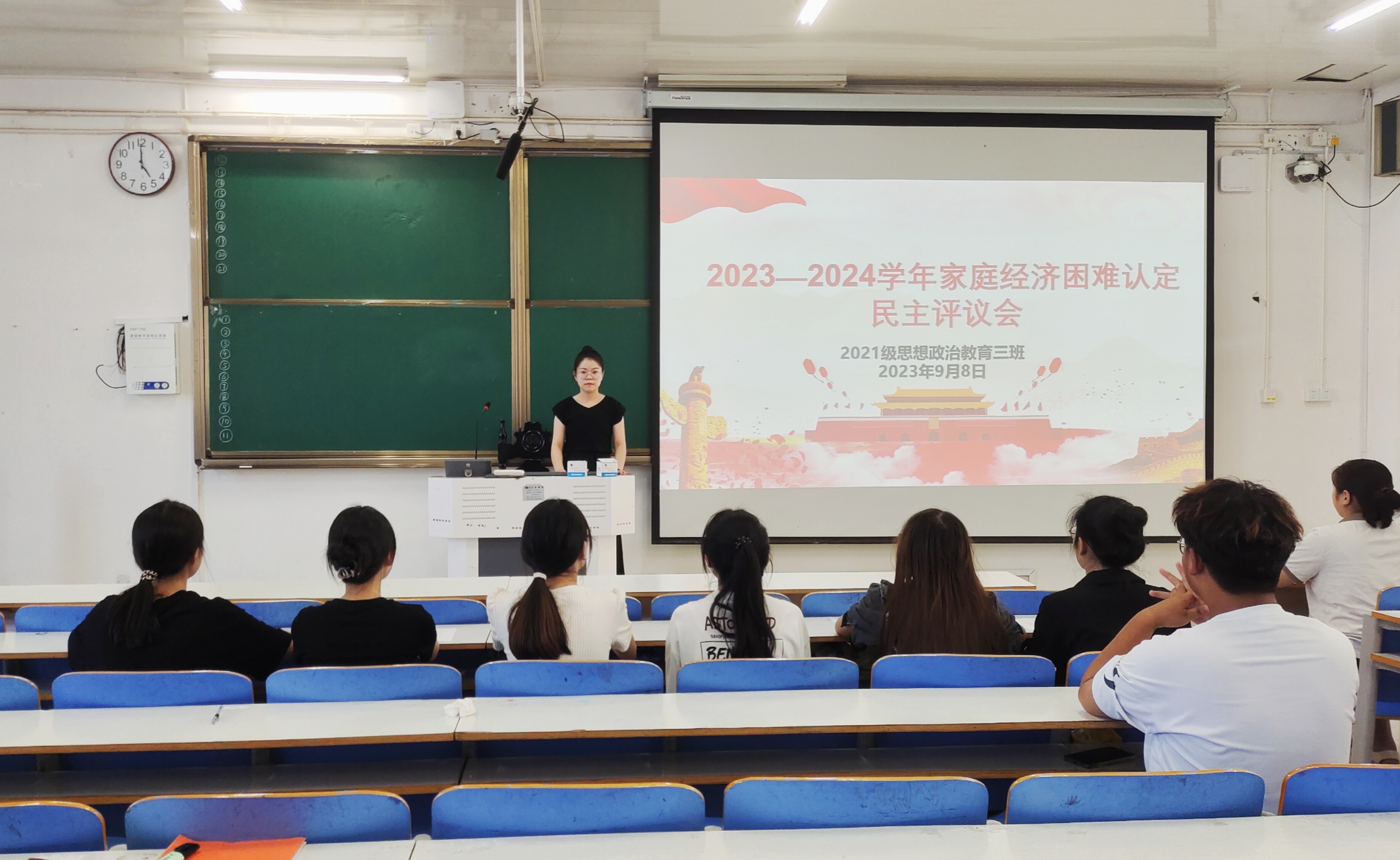 9月8日下午,3044am永利集团3044noc2021级思想政治教育三班在社科楼514教室召开2023—2024学年家庭经济困难认定民主评议会。高小佳老师、2021级思想政治教育三班贫困认定委员团全体成员以及权益保障部靳澍畅、宣传委员陈笑宇、组织委员秦梦莹参与此次会议。会议由辅导员高小佳主持。