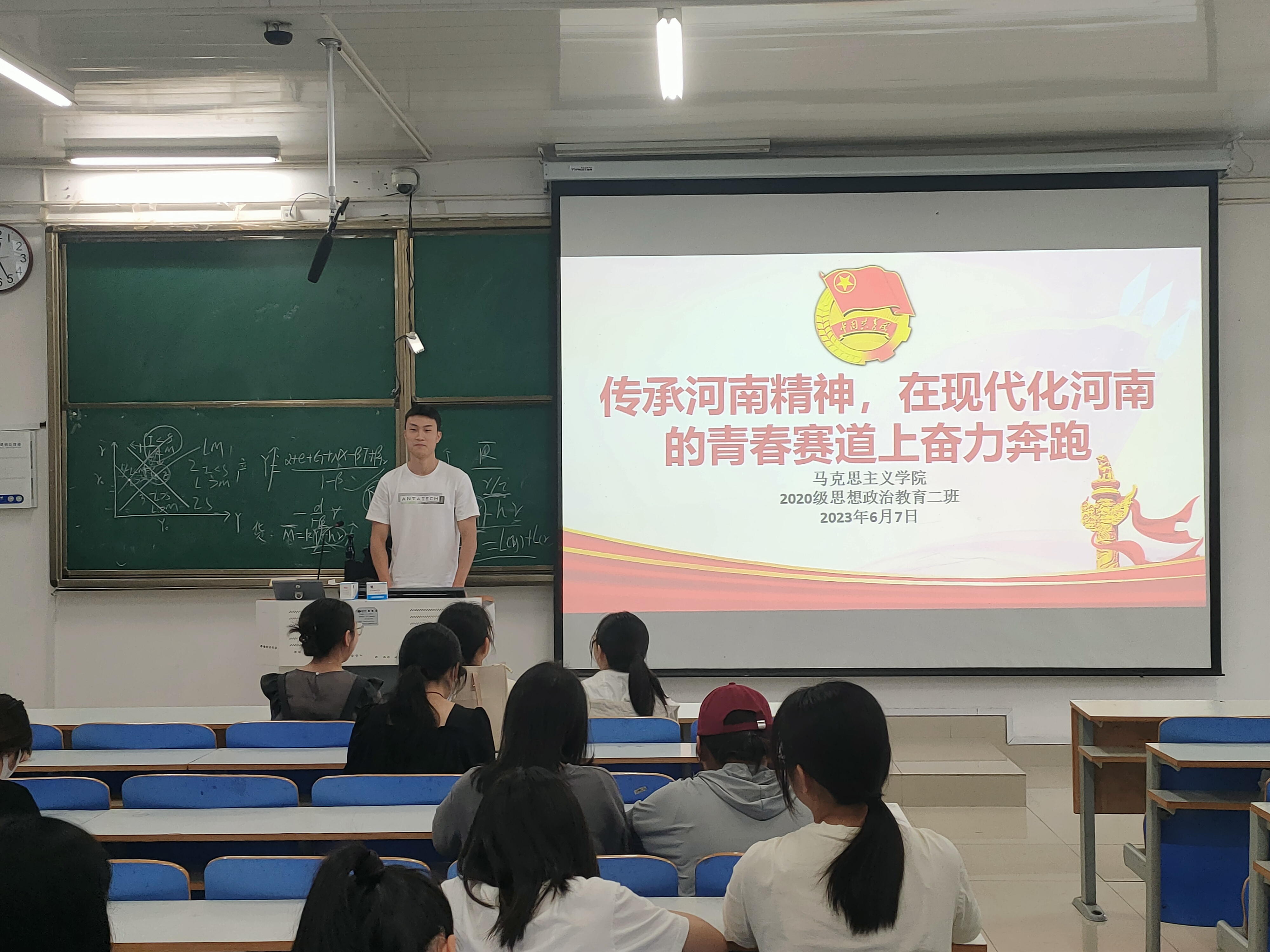 为重温河南省第十一次党代会精神,激发青年学生拼搏奋进内生动力,6月7日上午,3044am永利集团3044noc2020级思想政治教育二班、定向二班在社科楼514教室开展“重温河南省第十一次党代会精神,凝聚现代化河南建设伟力”主题团课。二班、定向二班全体团员共同参与本次团课。团课由团支书陈宇航主持。