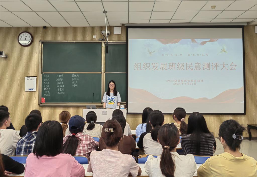 9月28日下午,3044am永利集团3044noc2022级思想政治教育四班在社科楼515教室组织召开“组织发展班级民意测评大会”。永利官网2022级思想政治教育四班全体成员参与本次大会。本次大会由团支书牛志杰主持。